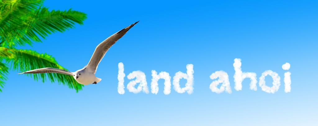 Keywords: gull sky palm fly font land in sight hope positive bird blue clouds wing mood
