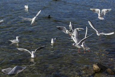 Keywords: gulls white gulls birds animal world water seagull waterfowl fly wing in flight