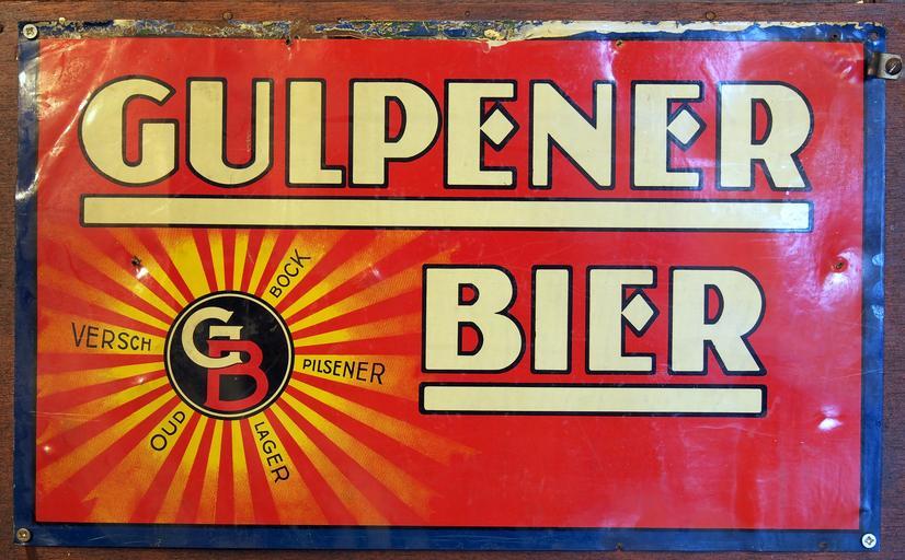 Keywords: Gulpener Bier reclame bord.JPG Photographed at the Bierreclame Museum Haagweg Breda The Netherlands Old beer brand that is not produced and/or sold anymore own 2014-11-16 11 23 28 Alf van Beem CC-zero Trademarked Bierreclame Museum Haagweg