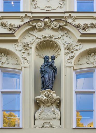 MAKE A MEME View Large Image Gunezrainerhaus 1730 detail facade Munich.jpg fr Détail de la façade de la Gunezrainerhaus statue de la Vierge à l'enfant 1730 Promenadeplatz Munich Bavière Allemagne en Detail of the facade of the Gunezrainerhaus 1730 statue of Madonna ...