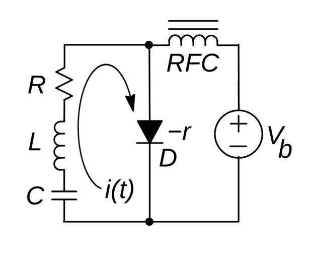 MAKE A MEME View Large Image Gunn diode oscillator circuit.svg negative resistance oscillator circuit using a Gunn diode It consists on a series resonant circuit L and C connected across a Gunn diode D A DC voltage source V<sub>b</sub> biases the diode into its ...