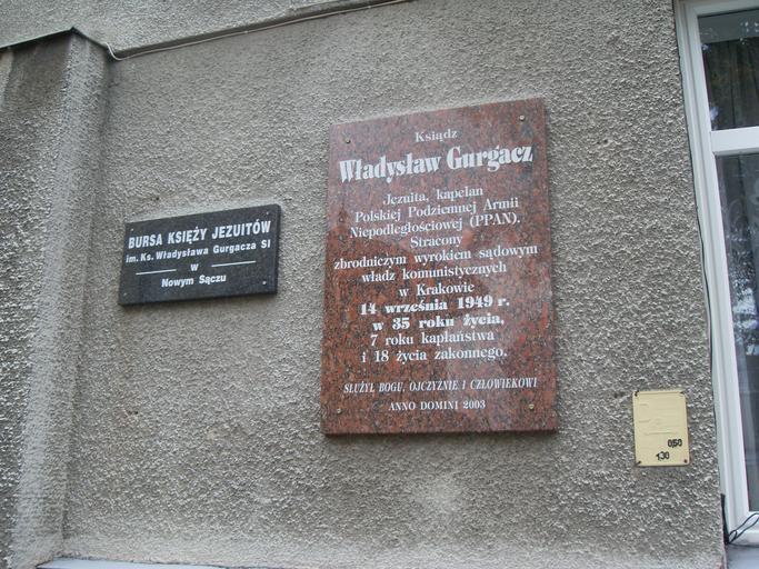Keywords: GurgaczNS.JPG pl Tablica ku czci ks W Gurgacza na Bursie Jezuitów w Nowym Sączu own Miezian Monuments and memorials in Nowy Sącz Plaques in Lesser Poland Voivodeship Nowy Sącz Władysław Gurgacz