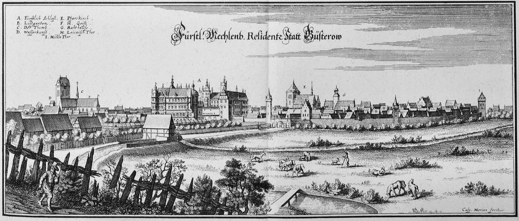 | Keywords: Güsterow (Merian).jpg Artwork creator Matthäus Merian b 1653 copper engraving object history exhibition history credit line de accession number Topographia Saxoniae Inferioris Frankfurt am Main 1653 PD-100 thumb Engravings of Topographia Saxoniae Inferioris Güstrow in the 17th century History of Schloss Güstrow Caspar Merian Mecklenburg-Vorpommern in the 1650s |