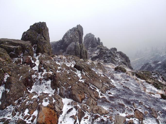 Keywords: gutâi mountains transylvania large mining baia sprie cliff winter snow ice mountains high mountains climbing fog snowy cockscomb cocosului