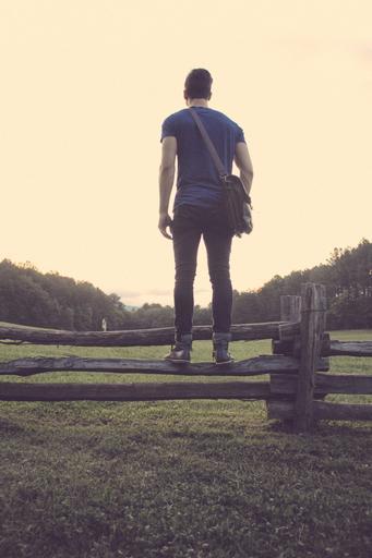 Keywords: guy fence rural grass countryside nature fashion bag leather people lifestyle sky