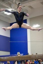Keywords: gymnastics female performance balance beam exercise leap fitness woman strength poise athlete split college liz copan competition