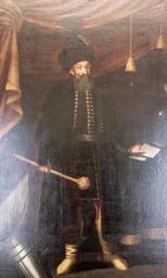 | Keywords: György I Rákóczi, prince of Transylvania.jpg Artwork Creator unknown century 17 oil on canvas Institution Hungarian National Museum Budapest object history From the ancestral gallery of the Nádasdy family credit line accession number own ; Photo by Szilas in the Hungarian National Museum Commonist PD-old-100 17th-century unidentified painters 1648< Paintings in the Hungarian National Museum Nádasdy family 17th-century portrait paintings not categorised by year Male 1593 births 1648 deaths 17th-century oil portraits of standing men at full length in national costumes 1648< Male boots with spurs in portrait paintings 1648< Portrait paintings of bearded men 1648< Portrait paintings of men holding mace 1648< Portrait paintings with Spanish composition Portraits with letters 1648< Red drapery in portrait paintings 1648< Tassels in portrait paintings 1648< |