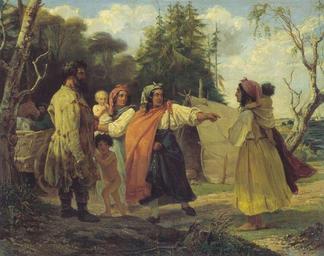 | Keywords: Gypsy camp in a forest 1842.jpg en Gypsy camp in a forest 1842 ru Цыганский табо в лесу 1842 pl Cygański tabor w lesie 1842 www artsait ru/art/r/riss/main htm François Nicholas Riss 1804-1886 1842 PD-Art Genre paintings from Russia François Nicholas Riss Roma people in art |