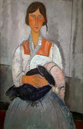 | Keywords: Gypsy Woman with Baby by Amedeo Modigliani (4987906999).jpg  Gypsy Woman with Baby 1919 by Amedeo Modigliani oil on canvas Maud Dale was a staunch supporter of the art of Amedeo Modigliani She organized exhibitions featuring his work and published one of the very first monographs on the artist in 1929 The Dales eventually collected 21 of the artist's works to form what contemporaries considered to be the finest selection of his oeuvre in existence Thirteen of these works are now in the collection of the National Gallery of Art http //www nga gov/fcgi-bin/tinfo_f object 46649 www nga gov/fcgi-bin/tinfo_f object 46649 https //www flickr com/photos/nostri-imago/4987906999/ Gypsy Woman with Baby by Amedeo Modigliani 2010-09-05 04 04 https //www flickr com/people/28567825 N03 Cliff from Arlington Virginia USA <gallery>Amedeo Modigliani - Gypsy Woman with Baby 1919 jpg</gallery> cc-by-2 0 cliff1066 „¢ http //flickr com/photos/28567825 N03/4987906999 2015-06-13 12 50 57 cc-by-2 0 PD-old-auto-1923 1920 DEFAULTSORT Modigliani Amedeo; Gypsy Woman with Baby 1919; National Gallery of Art Chester Dale Collection Gypsy Woman with Baby |