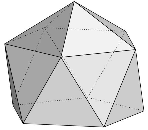 Keywords: Gyroelongated Pentagonal Pyramid.svg en Shaded wireframe of a gyroelongated pentagonal pyramid Created with GeoGebra 2013-11-07 23 22 35 own DEMcAdams cc-zero Uploaded with UploadWizard Set of polyhedra; simple gray