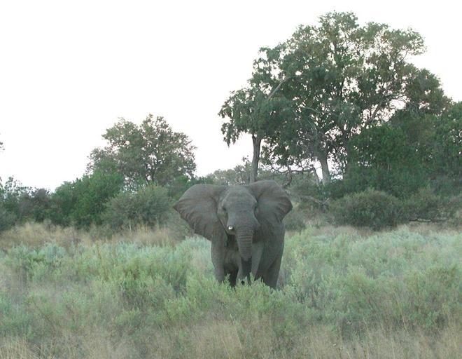 Keywords: H19elestand.jpg An african elephant in an apparently angry mood in Botswana Ein afrikanischer Elefant in Angriffsposition in Botsuana http //www fourmilab ch/images/eclipse_2001/africaimages html John Walker PD images from John Walker John Walker Loxodonta africana Elephants of Botswana |