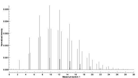 Keywords: H2CO rot spec.png en Rotational spectrum of H2CO at 30K using pgopher own Brianphelan 2008-12-15 Check categories 2008 December 20 en wikipedia Formaldehyde Formaldehyde Infrared spectroscopy