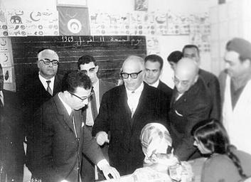 | Keywords: Habib Bourguiba, 11 avril 1969.jpg fr Habib Bourguiba visite une salle de classe dans la localité de Sayada ar الزعيم الحبيب بورقيبة يزور قاعة دراسة بمدرسة في منطقة صيادة 1969-04-11 Archives de la Municipalité de Sayada author PD-Tunisia Uploaded with UploadWizard Habib Bourguiba in 1969 Bahi Ladgham Mohamed Sayah People of Tunisia in 1969 Schools in Tunisia Classrooms in Tunisia People with flags of Tunisia Sayada Media from the Municipal Archives of Sayada ImageNote 1 1049 393 149 235 1836 1332 2 Mohamed Sayah ImageNoteEnd 1 ImageNote 2 237 353 226 267 1836 1332 2 Bahi Ladgham ImageNoteEnd 2 |
