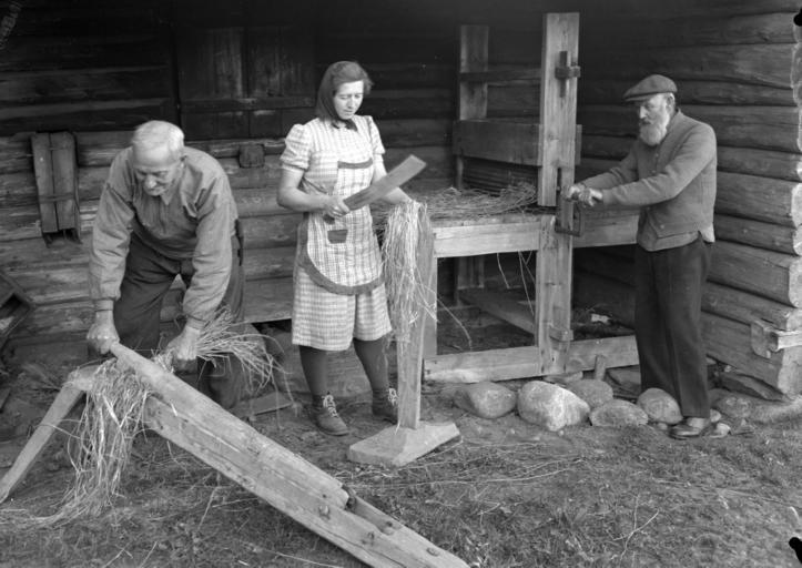 | Keywords: håndverk jordbruk kultur kulturminner landbruk mennesker museer verktøy og redskaper verktøyogredskaper oppland norge nor blackandwhite monochrome black and white En kvinne og to menn arbeider med lin foran en linbadstu. Opprinnelig var denne badstuen fra gården Dile i Vestre Gran. En kvinne og to menn arbeider med lin foran en linbadstu. Opprinnelig var denne badstuen fra gården Dile i Vestre Gran. | ||||