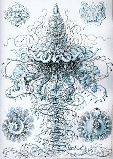 | Keywords: Haeckel Siphonophorae 37.jpg center Discolabe quadrigata <small> Haeckel </small> Physophora hydrostatica <small>Forskål 1775</small> colony top left Discolabe quadrigata <small> Haeckel </small> Physophora hydrostatica <small>Forskål 1775</small> gas bladder and bells from above top right Discolabe quadrigata <small> Haeckel </small> Physophora hydrostatica <small>Forskål 1775</small> single swimming bell from above bottom left Discolabe quadrigata <small> Haeckel </small> Physophora hydrostatica <small>Forskål 1775</small> trunk without polyps from below bottom right Discolabe quadrigata <small> Haeckel </small> Physophora hydrostatica <small>Forskål 1775</small> trunk without polyps from above Kunstformen der Natur 1904 plate 37 Siphonophorae see http //caliban mpiz-koeln mpg de/haeckel/kunstformen/high/Tafel_037_300 html here http //caliban mpiz-koeln mpg de/haeckel/kunstformen/high/Tafel_037_text_1_200 html here and http //caliban mpiz-koeln mpg de/haeckel/kunstformen/high/Tafel_037_text_2_200 html here creator Ernst Haeckel 1904 public domain due to age PD-old Kunstformen der Natur 1904 Physophora hydrostatica |