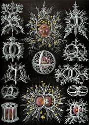 | Keywords: Haeckel Stephoidea.jpg Assessments 1 top center Lithocircus magnificus <small> Haeckel </small> Lithocircus sp living animal top left Semantis sigillum <small> Haeckel </small> Tholospyris procera <small>Goll 1969</small> skeleton of juvenile bottom left upper Acanthodesmia corona <small> Haeckel </small> Acanthodesmia sp skeleton center right upper Tristephanium dimensivum <small> Haeckel </small> Tristephanium dimensivum <small>Haeckel 1887</small> skeleton center Trissocyclus sphaeridium <small> Haeckel </small> Trissocyclidae sp living animal center right lower Octotympanum cervicorne <small> Haeckel </small> Acanthodesmia viniculata <small> Müller 1857 </small> skeleton bottom right upper Microcubus zonarius <small> Haeckel </small> Amphispyris zonarius <small> Haeckel 1887 </small> skeleton top right Tympaniscus tripodiscus <small> Haeckel </small> Trissocyclidae sp skeleton center left upper Tympaniscus quadrupes <small> Haeckel </small> Trissocyclidae skeleton bottom center Tympanidium foliosum <small> Haeckel </small> Tympanidium foliosum <small>Haeckel 1887</small> living animal bottom left lower Lithotympanum tuberosum <small> Haeckel </small> Lithotympanum tuberosum <small>Haeckel 1887</small> living animal center left lower Circotympanum octogonium <small> Haeckel </small> Nassellaria sp </small> skeleton bottom right lower Lithocubus astragalus <small> Haeckel </small> Lithocubus ap living animal Kunstformen der Natur 1904 plate 71 Stephoidea see http //caliban mpiz-koeln mpg de/haeckel/kunstformen/high/Tafel_071_300 html here http //caliban mpiz-koeln mpg de/haeckel/kunstformen/high/Tafel_071_text_1_200 html here and http //caliban mpiz-koeln mpg de/haeckel/kunstformen/high/Tafel_071_text_2_200 html here creator Ernst Haeckel 1904 public domain due to age <gallery>File Haeckel Stephoidea edit jpg Edited for dust contrast and uneven border</gallery> PD-old Kunstformen der Natur 1904 Radiolaria |