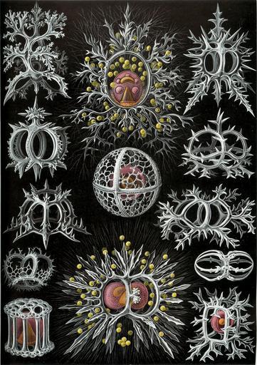 Keywords: Haeckel Stephoidea.jpg Assessments 1 top center Lithocircus magnificus <small> Haeckel </small> Lithocircus sp living animal top left Semantis sigillum <small> Haeckel </small> Tholospyris procera <small>Goll 1969</small> skeleton of juvenile bottom left upper Acanthodesmia corona <small> Haeckel </small> Acanthodesmia sp skeleton center right upper Tristephanium dimensivum <small> Haeckel </small> Tristephanium dimensivum <small>Haeckel 1887</small> skeleton center Trissocyclus sphaeridium <small> Haeckel </small> Trissocyclidae sp living animal center right lower Octotympanum cervicorne <small> Haeckel </small> Acanthodesmia viniculata <small> Müller 1857 </small> skeleton bottom right upper Microcubus zonarius <small> Haeckel </small> Amphispyris zonarius <small> Haeckel 1887 </small> skeleton top right Tympaniscus tripodiscus <small> Haeckel </small> Trissocyclidae sp skeleton center left upper Tympaniscus quadrupes <small> Haeckel </small> Trissocyclidae skeleton bottom center Tympanidium foliosum <small> Haeckel </small> Tympanidium foliosum <small>Haeckel 1887</small> living animal bottom left lower Lithotympanum tuberosum <small> Haeckel </small> Lithotympanum tuberosum <small>Haeckel 1887</small> living animal center left lower Circotympanum octogonium <small> Haeckel </small> Nassellaria sp </small> skeleton bottom right lower Lithocubus astragalus <small> Haeckel </small> Lithocubus ap living animal Kunstformen der Natur 1904 plate 71 Stephoidea see http //caliban mpiz-koeln mpg de/haeckel/kunstformen/high/Tafel_071_300 html here http //caliban mpiz-koeln mpg de/haeckel/kunstformen/high/Tafel_071_text_1_200 html here and http //caliban mpiz-koeln mpg de/haeckel/kunstformen/high/Tafel_071_text_2_200 html here creator Ernst Haeckel 1904 public domain due to age <gallery>File Haeckel Stephoidea edit jpg Edited for dust contrast and uneven border</gallery> PD-old Kunstformen der Natur 1904 Radiolaria |
