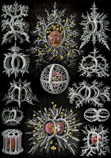 | Keywords: Haeckel Stephoidea edit.jpg Assessments 1 top center Lithocircus magnificus <small> Haeckel </small> Lithocircus sp living animal top left Semantis sigillum <small> Haeckel </small> Tholospyris procera <small>Goll 1969</small> skeleton of juvenile bottom left upper Acanthodesmia corona <small> Haeckel </small> Acanthodesmia sp skeleton center right upper Tristephanium dimensivum <small> Haeckel </small> Tristephanium dimensivum <small>Haeckel 1887</small> skeleton center Trissocyclus sphaeridium <small> Haeckel </small> Trissocyclidae sp living animal center right lower Octotympanum cervicorne <small> Haeckel </small> Acanthodesmia viniculata <small> Müller 1857 </small> skeleton bottom right upper Microcubus zonarius <small> Haeckel </small> Amphispyris zonarius <small> Haeckel 1887 </small> skeleton top right Tympaniscus tripodiscus <small> Haeckel </small> Trissocyclidae sp skeleton center left upper Tympaniscus quadrupes <small> Haeckel </small> Trissocyclidae skeleton bottom center Tympanidium foliosum <small> Haeckel </small> Tympanidium foliosum <small>Haeckel 1887</small> living animal bottom left lower Lithotympanum tuberosum <small> Haeckel </small> Lithotympanum tuberosum <small>Haeckel 1887</small> living animal center left lower Circotympanum octogonium <small> Haeckel </small> Nassellaria sp </small> skeleton bottom right lower Lithocubus astragalus <small> Haeckel </small> Lithocubus ap living animal Kunstformen der Natur 1904 plate 71 Stephoidea see http //caliban mpiz-koeln mpg de/haeckel/kunstformen/high/Tafel_071_300 html here http //caliban mpiz-koeln mpg de/haeckel/kunstformen/high/Tafel_071_text_1_200 html here and http //caliban mpiz-koeln mpg de/haeckel/kunstformen/high/Tafel_071_text_2_200 html here <br /> Edited for dust contrast and uneven border by mixpix 15 02 24 January 2008 UTC creator Ernst Haeckel 1904 public domain due to age <gallery>File Haeckel Stephoidea jpg Unedited version</gallery> PD-old Kunstformen der Natur 1904 Radiolaria |