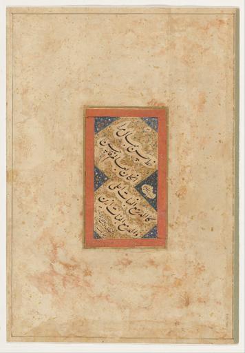 | Keywords: Hafiz Nurullah - Page from an album- calligraphy panel (verso) - Google Art Project.jpg Hafiz 715335 Nurullah /collection/national-gallery-of-australia-canberra/artwork/page-from-an-album-calligraphy-panel-verso-hafiz-nurullah/717268/ Hafiz Nurullah /artist/hafiz-nurullah/4125596/ 4125596 /collection/national-gallery-of-australia-canberra/ National Gallery of Australia Canberra 388004 http //nga gov au/ 1/20/2012 7 05 09 PM /collection/national-gallery-of-australia-canberra/artwork/page-from-an-album-calligraphy-panel-verso-hafiz-nurullah/717268/ 1760 1760 80 216 717268 True 1780 3/24/2012 9 40 29 AM 193252 http //artsearch nga gov au/Detail cfm IRN 193252 http //nga gov au/Collection/Copyright cfm National Gallery of Australia The Gayer-Anderson Gift Miniature opaque watercolour gold 1760 1790 Lucknow DelhiUttar Pradesh IndiaIndia w138 x h216 cm 1760 80 False 0 6953125 Object page-from-an-album-calligraphy-panel-verso-hafiz-nurullah Page from an album calligraphy panel verso p 138 special url_id 2QGcJ4EsycCamw PD-old-100 Google Art Project works by Hafiz Nurullah Calligraphy |