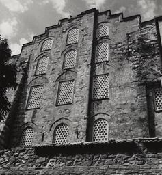Keywords: salt araştırma saltaraştırma salt research saltresearch salt online saltonline gül camii gülcamii hagia theodosia kilisesi hagiatheodosiakilisesi ayia theodosia ayiatheodosia doğu roma dönemi doğuromadönemi adile sultan halk kütüphanesi adilesultanhalkkütüphanesi gül mosque gülmosque hagia theodosia church hagiatheodosiachurch byzantine period byzantineperiod byzantine bizans ayakapı i̇stanbul istanbul adile sultan public library adilesultanpubliclibrary blackandwhite texture text photo border outdoor black and white www.archives.saltresearch.org/R/VIUUJDNBUQJ4JFHYKDS8LGM5B... Hagia Theodosia Church, (Gül Mosque today), located in Ayakapı in İstanbul, is a religious building from the Byzantine period. It was built during the 10th or 11th centuries. After the conquest of İstanbul, the building served local shipyards as a warehouse for shiping equipment. It was converted into a mosque in 1499 and a minaret was added to the building during the period of Selim II. After being destroyed by fire in 1633, the building was renovated. A further, more extensive restoration was undertaken on the order of Mahmud II (1808-1839). After being used as the Adile Sultan Public Library for some years, the building is empty today. SALT Research, Photography Archive Gül Camii olarak bilinen Hagia Theodosia Kilisesi Ayakapı’da yer alır. Doğu Roma döneminden kalma yapının 10. ya da 11. yüzyılda inşa edildiği düşünülmektedir. Kilise, İstanbul’un fethinden sonra bir süre, Haliç’teki tersanelerin malzeme deposu olarak kullanıldı. 1499’da camiye çevrildi, II. Selim zamanında minaresi eklendi. 1633’te geçirdiği bir yangının ardından onarılsa da, geniş kapsamlı onarımı II. Mahmut zamanında (1808-1839) gerçekleştirildi. Bir dönem Adile Sultan Halk Kütüphanesi olarak kullanılan yapı bugün atıl vaziyette durmaktadır. SALT Araştırma, Fotoğraf Arşivi www.archives.saltresearch.org/R/VIUUJDNBUQJ4JFHYKDS8LGM5B... Hagia Theodosia Church, (Gül Mosque today), located in Ayakapı in İstanbul, is a religious building from the Byzantine period. It was built during the 10th or 11th centuries. After the conquest of İstanbul, the building served local shipyards as a warehouse for shiping equipment. It was converted into a mosque in 1499 and a minaret was added to the building during the period of Selim II. After being destroyed by fire in 1633, the building was renovated. A further, more extensive restoration was undertaken on the order of Mahmud II (1808-1839). After being used as the Adile Sultan Public Library for some years, the building is empty today. SALT Research, Photography Archive Gül Camii olarak bilinen Hagia Theodosia Kilisesi Ayakapı’da yer alır. Doğu Roma döneminden kalma yapının 10. ya da 11. yüzyılda inşa edildiği düşünülmektedir. Kilise, İstanbul’un fethinden sonra bir süre, Haliç’teki tersanelerin malzeme deposu olarak kullanıldı. 1499’da camiye çevrildi, II. Selim zamanında minaresi eklendi. 1633’te geçirdiği bir yangının ardından onarılsa da, geniş kapsamlı onarımı II. Mahmut zamanında (1808-1839) gerçekleştirildi. Bir dönem Adile Sultan Halk Kütüphanesi olarak kullanılan yapı bugün atıl vaziyette durmaktadır. SALT Araştırma, Fotoğraf Arşivi