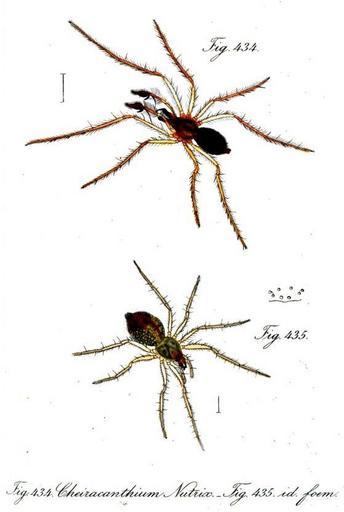 | Keywords: Hahn 1839 Cheiracanthium punctorium f m.jpg Cheiracanthium Nutrix im Sinne von Carl Ludwig Koch 1839 Ch punctorium Villers 1789 Männchen Fig 434 und Weibchen Fig 435 Erstbeschreibung der Gattung Cheiracanthium C L Koch 1839 Carl Ludwig Koch Begründer Carl Wilhelm Hahn Die Arachniden - Getreu nach der Natur abgebildet und beschrieben C H Zeh'sche Buchhandlung Nürnberg Sechster Band 1839 S 1-156 hier S 9-11 und Tab CLXXXII Fig 434-435 Originalexemplar von Oxford University Digitalisiert am 10 Mai 2006 Google URL http //books google de/books id sxEAAAAAQAAJ pg PT7 output html oder http //books google de/books pg PT7 id sxEAAAAAQAAJ abgerufen am 16 I 2008 über Google Buchsuche 1839 Carl Ludwig Koch Todesjahr 1857 laut http //de wikipedia org/wiki/Carl_Ludwig_Koch PD-old Original upload log de wikipedia Ireas CommonsHelper page de wikipedia Hahn_1839_Cheiracanthium_punctorium_f_m jpg 2008-01-16 21 30 Anglo-Araneophilus 559×832× 127843 bytes <nowiki> Information Cheiracanthium Nutrix im Sinne von Carl Ludwig Koch 1839 Ch punctorium Villers 1789 Männchen Fig 434 und Weibchen Fig 435 Erstbeschreibung der Gattung Cheiracanthium C L Koch 1839 Carl Ludwig Koc</nowiki> Cheiracanthium punctorium |