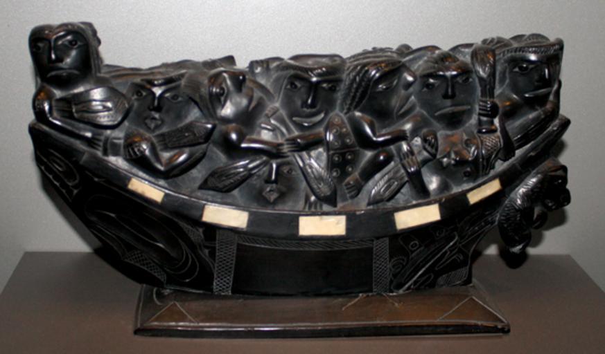 | Keywords: Haida argillite carving BC 1850 nmai13-1875.jpg en Haida carving argillite animal 1850-1900 Haida Gwai British Columbia 33 cm long Depicts a canoe and oarsmen NMAI 13/1875 own Uyvsdi 2009-06 Haida argillite objects Canoes in art Indigenous sculpture of the Americas Collections of the National Museum of the American Indian Northwest Coast art Indigenous art of the Americas | ||||