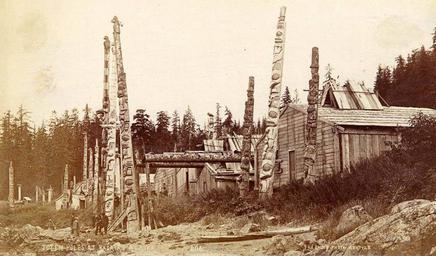 | Keywords: Haida totem poles and lodges at the village of old Kasaan, Alaska, ca 1897 (LAROCHE 235).jpeg Photograph Creator Frank La Roche Caption on image Totem poles at Kasa-an Alaska Subjects LCTGM Cities towns--Alaska Subjects LCSH Totem poles--Alaska--Kasaan; Kasaan Alaska ; Haida Indians--Alaska--Kasaan depicted place Kasaan Alaska ca 1897 Institution University of Washington UWASH-LAROCHE-source accession number laroche 235 PD-old-auto-1923 1936 Information field Order Number LAR124 Totem poles in Alaska Haida wood carving Buildings in Alaska Kasaan Alaska Alaska in the 1890s Black and white photographs |