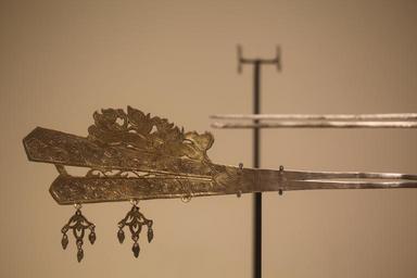 Keywords: Hairpin-IMG 0445.JPG artist object type hairpin LangSwitch between 618 CE 907 CE Silver goldened Institution Musée Guimet object history credit line ProvenanceEvent purchase 1946 MA97 ProvenanceEvent purchase 1963 MA2557 and MA2558 accession number MA97 MA2557 or MA2558 Rama own artwork license PD-old-100 photo license Cc-by-sa-3 0-fr Cc-by-sa-2 0-fr CeCILL Rama other versions Collections of the Musée Guimet |