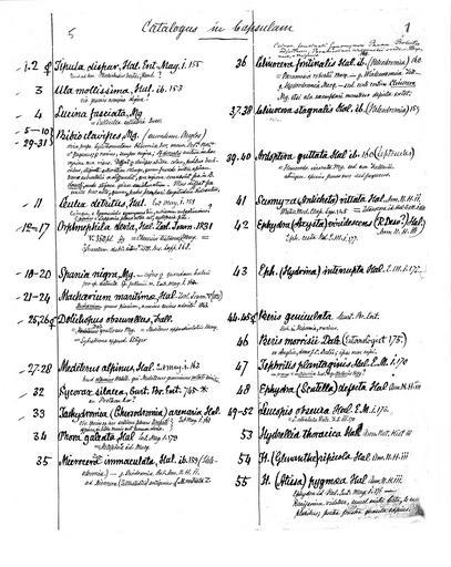 Keywords: Haliday Misc.JPG Haliday Ms Catalogus in Capsulum In English Catalogus in Capsulum means Catalogue of the little box Capsulum means in a condensed or compact form This is the first page The catalogue which is in Haliday's best handwriting lists the contents of Alexander Haliday ™s early cabinet of his valuable specimens That is to say his type specimens and very carefully mounted specimens of insects collected in Holywood Co Down A few survivors sent to Hermann Loew and misleadingly labelled Dublin by Loew are conserved in the Museum für Naturkunde in Berlin It is to be distinguished from his general collection The MfN specimens Tipulidae Tipula dispar Haliday 1833 155 A single direct pinned specimen on a long German pin- 2/3 way up 1st label Dublin in Haliday's hand/2nd label Tipula dis par Halid Ent M I I55 Loew's hand-writing and Type star Black ink on white card/ 3rd label tiny lilac label/4 th label printed 9156/5th label red printed Typus Geranomyia unicolor Haliday 1833 155 A single carded specimen on a long German pin 1st label unicolor/Hal Loew's hand-writing and Type star Black ink on white card /2nd label printed 8606 3 rd label Red Holotypus mihi Ula mollissima Haliday 1833 153 A single beautifully carded specimen 1st label Dublinin Haliday's hand/2nd label printed 6205/3rd label England sic Dublin 4 th label printed H Loew/5th label Ula mollissima Hal Ent Mag 1Loew's hand Black ink on white card Bibionidae Photocopy of RESL document 1840 Alexander Henry Haliday 1807-1870 Alexander Henry Haliday PD-old |