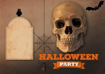 Keywords: halloween celebration party poster invitation festival memento mori skull and crossbones transience mystical mortal skull gloomy owl bat spider network fantasy world photo graphics