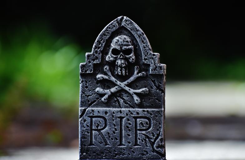 Keywords: halloween tombstone grey skull and crossbones creepy