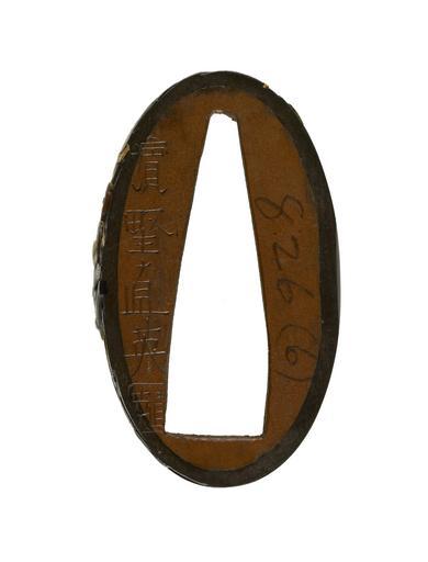| Keywords: Hamano Naohide - Fuchi with the Chinese General Kanyu - Walters 511068 - Mark A.jpg This is the 2nd-century Chinese general Kanyu Ch Guan Yu Kuan Yu Stories of his activities during the Three Kingdoms period are told in the 14th-century novel Romance of the Three Kingdoms He is recognizable by his long black beard A scroll is on the desk before him and his halberd is on the reverse This is part of a set with Walters 51 1069 1st half Other date century 19 late Edo shibuichi nigurome copper gold cm 3 7 l accession number 51 1068 29916 William T / Henry Walters Collection Baltimore date and mode of acquisition unknown Walters Art Museum Henry Walters Acquired by William T or Henry Walters Signature Hamano Naohide kakihan ; Number In pencil 826 6 place of origin Takata Japan Walters Art Museum license Fuchi in the Walters Art Museum Hamano Naohide Media contributed by the Walters Art Museum needs category review |