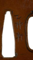 | Keywords: Hamano Shôzui - Tsuba with the Taoist Immortal Bukan and his Tiger - Walters 51296 - Mark A.jpg The Taoist immortal Bukan Ch Fenggan Feng Kan was known for riding his tiger around his monastery to shock others Here he is shown atop his tiger at the right side of the tsuba Only the front of the tiger and Bukan's torso can be seen Bukan's ability to tame the tiger represents the power of his knowledge On the reverse is a waterfall between 1696 1769 Edo copper alloy shibuichi gold copper shakudo cm 7 1 6 6 0 56 accession number 51 296 16425 Henry Walters Baltimore date and mode of acquisition unknown Walters Art Museum Henry Walters Acquired by Henry Walters Signature Otsuryûken place of origin Edo present-day Tokyo Japan Walters Art Museum license Tsuba in the Walters Art Museum Hamano Shôzui Media contributed by the Walters Art Museum needs category review |