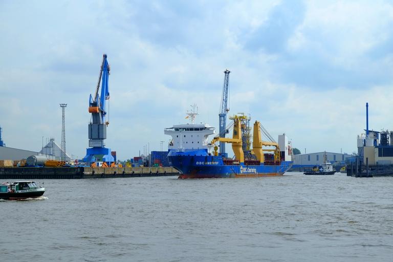 Keywords: hamburg port hamburg port hanseatic city ships harbour cranes container ship transport port of hamburg harbour city crane water channel bank
