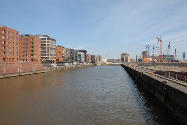 Keywords: hamburg port harbour city elbe channel construction work water port city construction building