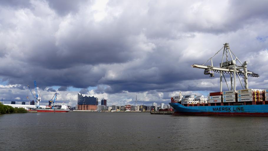 Keywords: hamburg port skyline elbe elbe philharmonic hall clouds