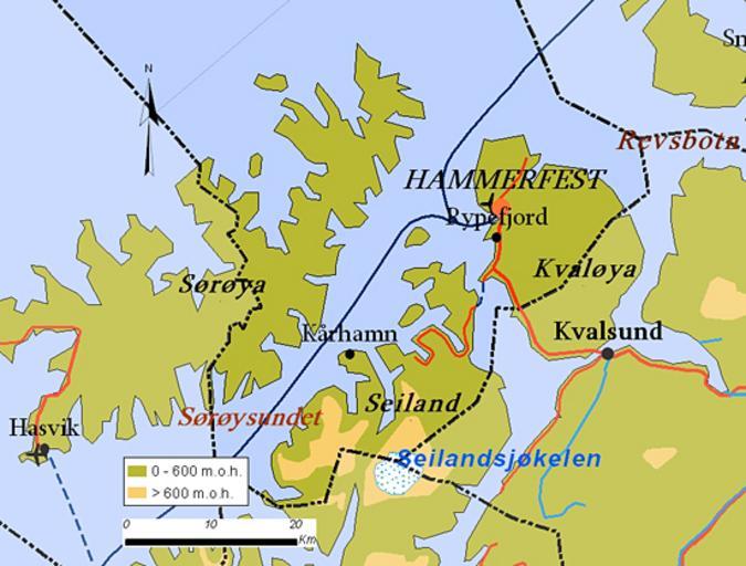 Keywords: Hammerfest map.jpg en Map of Hammerfest municipality Norway own Jensens 2008-12-05 Maps of Hammerfest municipality
