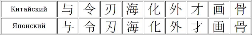 MAKE A MEME View Large Image Han-unification-example.png en A sample of Han characters that should have a different look in Chinese and Japanese writing ru П име китайских символов имеющих  азное наче тание в ...