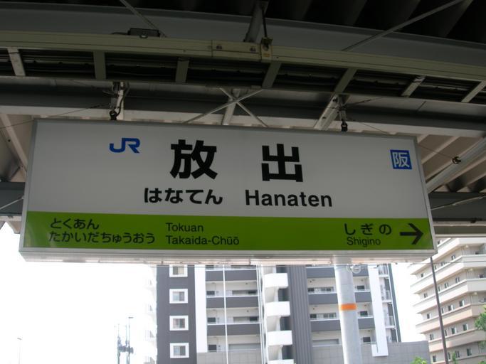 Keywords: Hanaten Station Sign DSCN5216 20080526.JPG Hanaten Station taken in 2008 おおさか 線開業後の放出駅駅名標 投稿 が撮影(2008年) Own Ogiyoshisan 2008-05-26 Hanaten Station