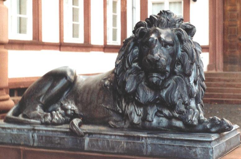 Keywords: Hanau Philippsruhe lion.jpg Hanau Germany Lion of Philippsruhe Castle May 2005 Statues of lions in Hesse Schloss Philippsruhe Statues of lions by Christian Daniel Rauch Guarding Lion by Theodor Kalide