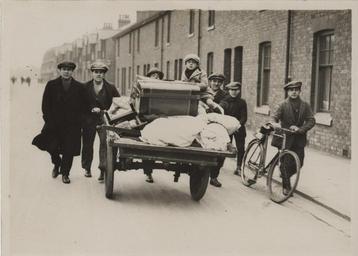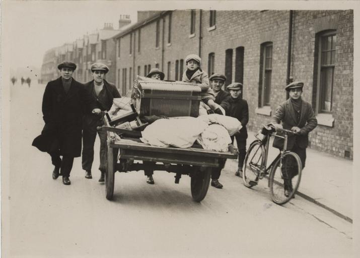 Keywords: hand cart handcart evacuation fire timber yard timberyard furniture hartlepool 1922 bicycle monochrome blackandwhite vehicle black and white Residents transporting belongings away from the area threatened by the Great Timber Yard Fire in Hartlepool, 1922, on a hand cart. Thanks to be efforts of firefighters, the spread of the blaze, which started at a timber yard near Union Street, was curtailed to the extent that it allowed people affected to evacuate furniture, along with other personal belongings. Photograph Collection No : 353 Images from Hartlepool Cultural Services that are part of The Commons on Flickr are labeled 'no known copyright restrictions' indicating that Hartlepool Cultural Services is unaware of any current copyright restrictions on these images either because the copyright is waived or the term of copyright has expired. Commercial use of images is not permitted. Applications for commercial use or for higher quality reproductions should be made to Hartlepool Cultural Services, Sir William Gray House, Clarence Road, Hartlepool, TS24 8BT. When using the images please credit 'Hartlepool Cultural Services'. Residents transporting belongings away from the area threatened by the Great Timber Yard Fire in Hartlepool, 1922, on a hand cart. Thanks to be efforts of firefighters, the spread of the blaze, which started at a timber yard near Union Street, was curtailed to the extent that it allowed people affected to evacuate furniture, along with other personal belongings. Photograph Collection No : 353 Images from Hartlepool Cultural Services that are part of The Commons on Flickr are labeled 'no known copyright restrictions' indicating that Hartlepool Cultural Services is unaware of any current copyright restrictions on these images either because the copyright is waived or the term of copyright has expired. Commercial use of images is not permitted. Applications for commercial use or for higher quality reproductions should be made to Hartlepool Cultural Services, Sir William Gray House, Clarence Road, Hartlepool, TS24 8BT. When using the images please credit 'Hartlepool Cultural Services'. |