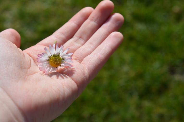 Keywords: hand daisy satisfaction white blossom bloom keep