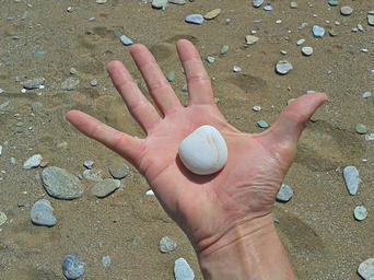 Keywords: hand finger open beach stone sand