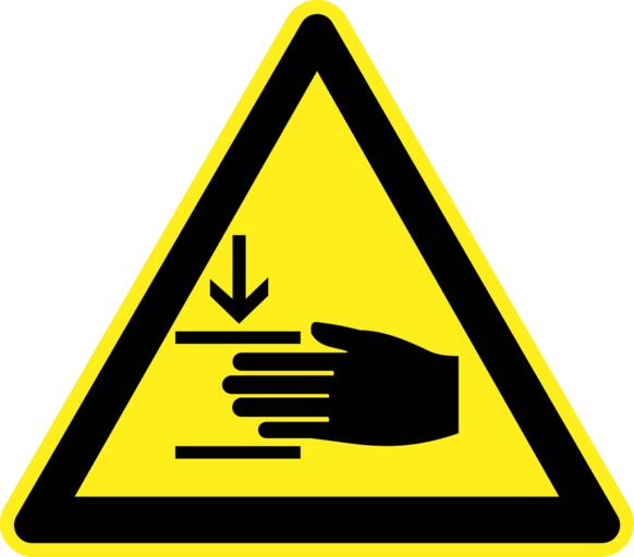 Keywords: hand injury crushing danger warning yellow sign symbol icon