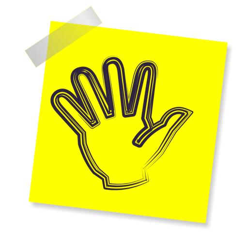 Keywords: hand palm sign icon reminder yellow sticker post note
