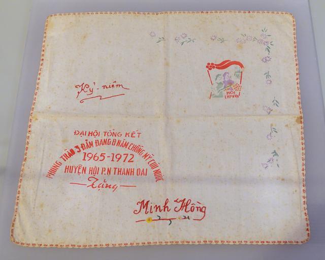 | View Original: | Handkerchief given to Hoang Thi Hong at the conference for the evaluation of the Three Responsibilities movement, Ha Tay, 1972 - Vietnamese Women's Museum - Hanoi, Vietnam - DSC04218.JPG (4344x3476) | |||