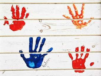 Keywords: handprint hands color wall wood colorful reprint art red blue finger finger paints paint children