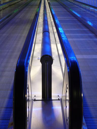 Keywords: handrails moving walkway roller platform treadmill moving sidewalk rolling pavement means of rail transport escalator metal segments neon blue airport business trip light movement roll band transport futuristic strange means of transport facilitate pavement