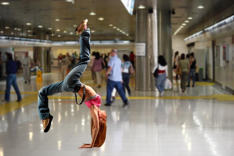 Keywords: handstand sporty limber woman girl joy of life jeans sneaker young hair long composing radschlagen somersault slim unconventional human fun movement active happy happiness fitness make bullshit dynamic carefree
