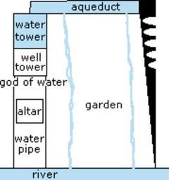 Keywords: Hanging Garden.gif A hanging garden 21st century interpretation In the front under this image is a river In the left a pipe go the well tower in the middle a water tower in the right garden by many fruit trees on a slope by tree pointed vaults and irrigation on a layer of asphalt and on the pipe is a altar by points Jasc Paint Shop Peter Ole Kvint PD Hanging Gardens of Babylon